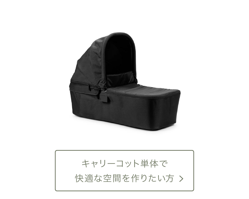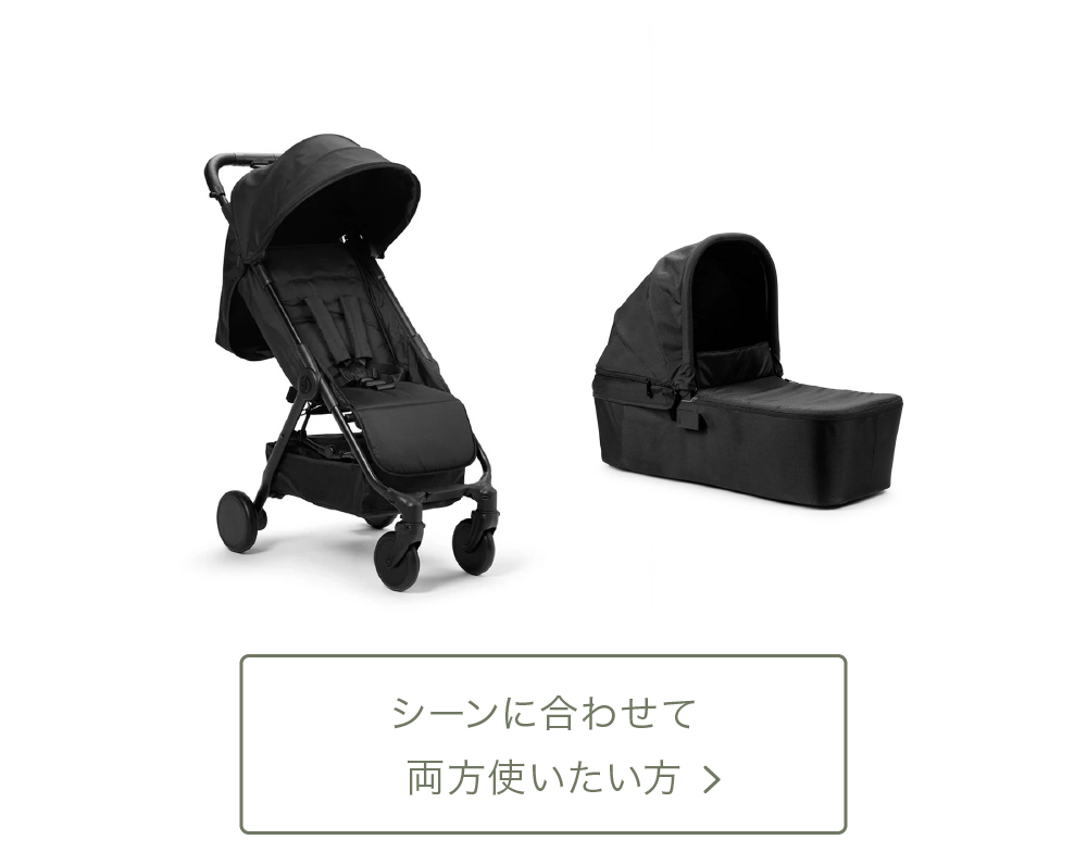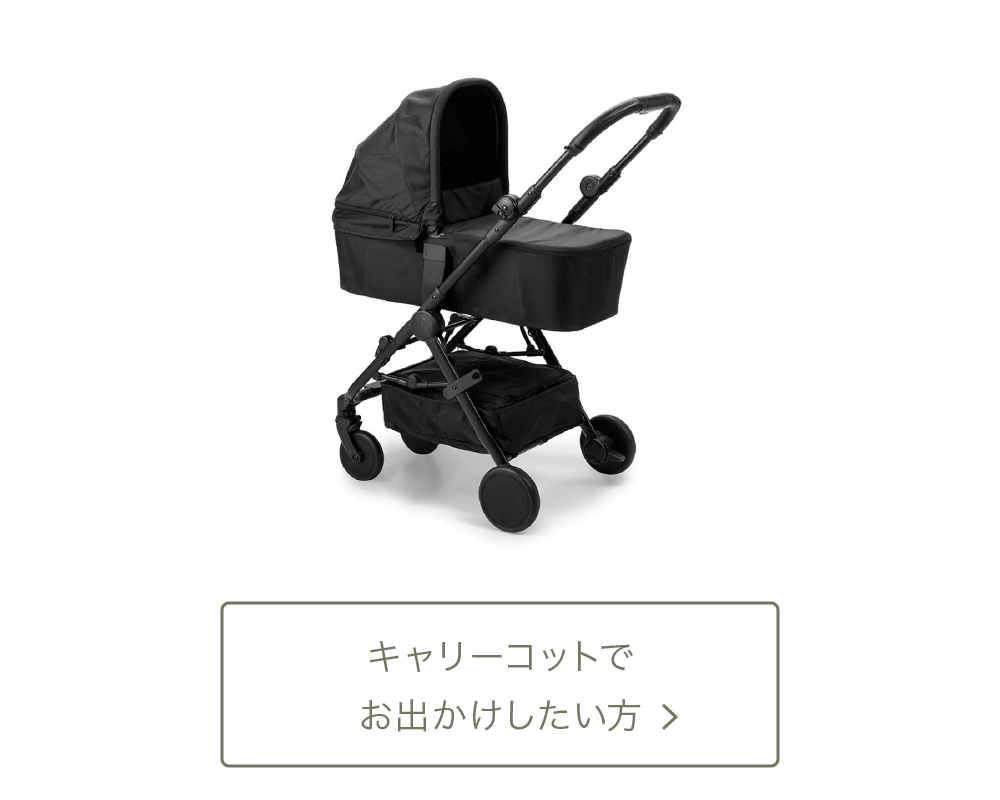 キャリーコットとモンドストローラーで生まれてから4歳頃まで快適なお出かけスタイル。