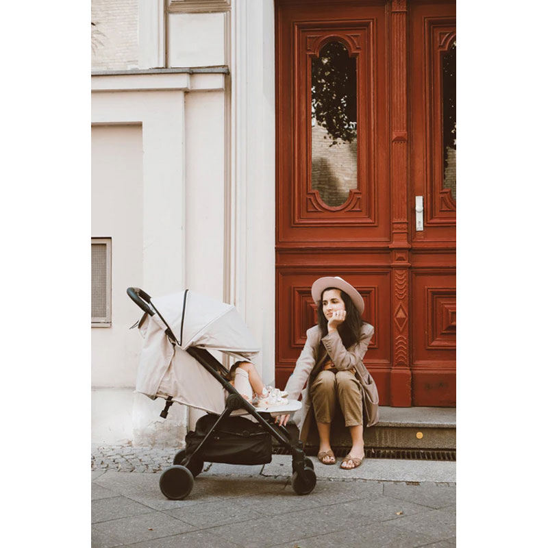 最もリクライニングした状態で新生児から使用可能。UPF50+のキャノピーが紫外線や風を防ぎ、軽量なのに頑丈なフレームと衝撃吸収ホイールで、スムーズで快適な乗り心地。別売りアダプターを使用すればカーシートとも連携可能。